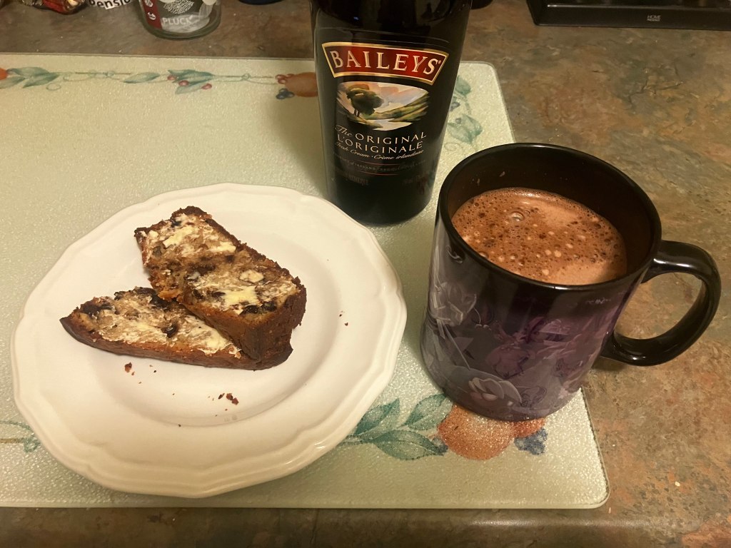 What do I usually do for Christmas? I had a little fake tree I put up, now donated. The German tradition is to open your gifts on Christmas Eve – gifts are from friends and family, what’s in your stocking on Christmas day is from Saint Nick. Ish. My mother used to give us a chocolate letter on Christmas Day, which seems to be Dutch, but then she was an army brat who learned French in Belgium (which was especially funny when the French in France accused her of being Quebecois). We also got gold-wrapped chocolate coins, and usually a panettone for some reason. I ran out on Saturday to grab crackers for the cheese plate and debated the panettone, but I have my banana bread to eat up.