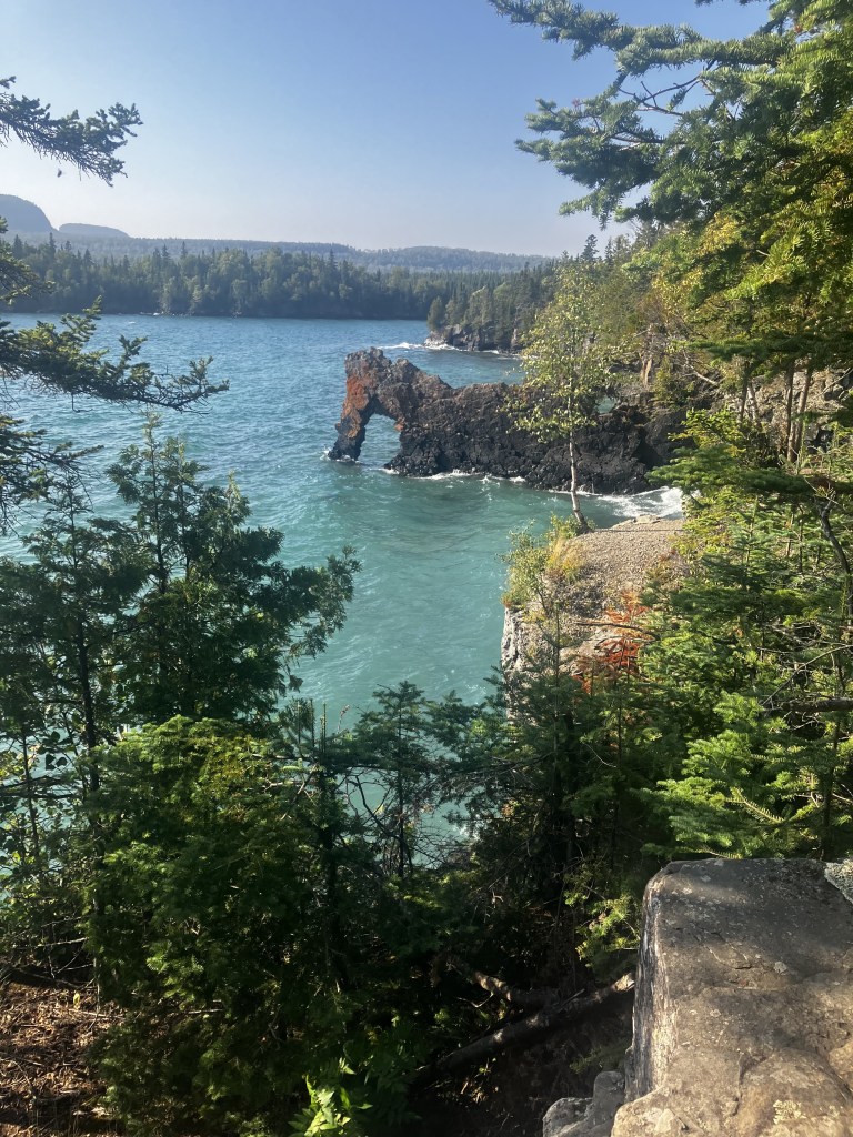 Saturday, he offered to take me out for my birthday. We went on the motorcycle, down the lakeshore road, then up the highway to a place they call “the Sleeping Giant”. We hiked out to the ‘Sea Lion’, and he hopped the fence and found a secluded place over the water for us to sit down.