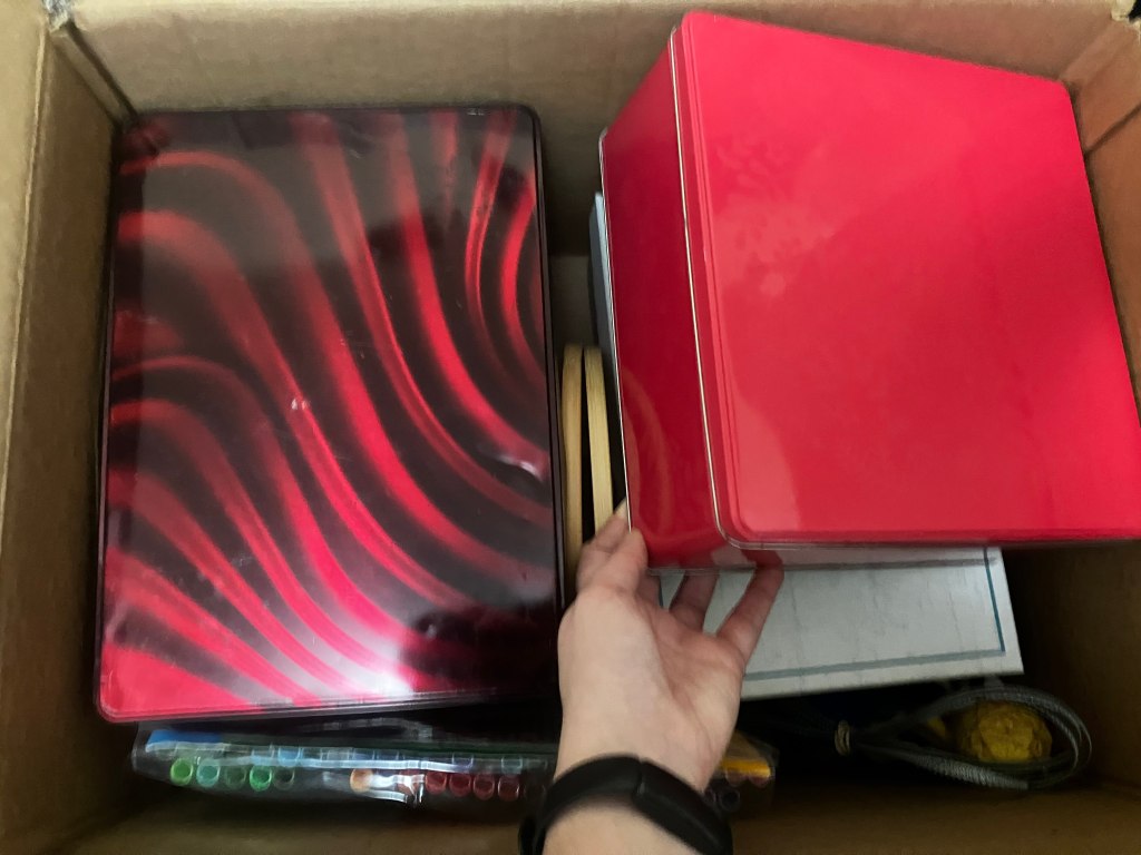 Oh jeez that’s blurry, I’m sorry, guys. I took it mostly to demonstrate how I stay organized. I hold on to old shoeboxes and the cookie tins you get around Christmas and sort my stuff into that. It also quite convenient for moving.