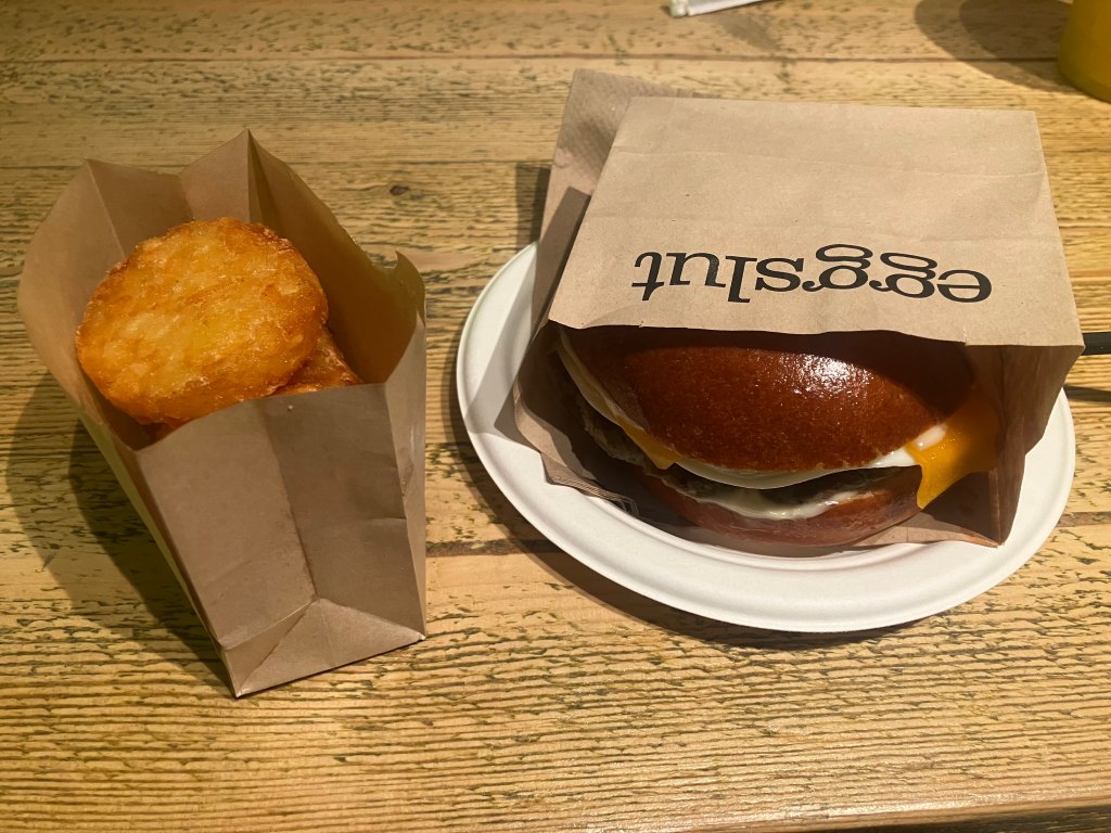 I needed food, and Damocles messaged us to tell us he was on his way, so we wandered down the road until we found a place called “Eggslut”. I ordered the sandwich with sausage, which came with a side of tiny round hashbrowns fried in duck fat, which were the most delicious hashbrowns I’ve ever had. If there were an Eggslut in Rich’s town I’d walk there for breakfast!