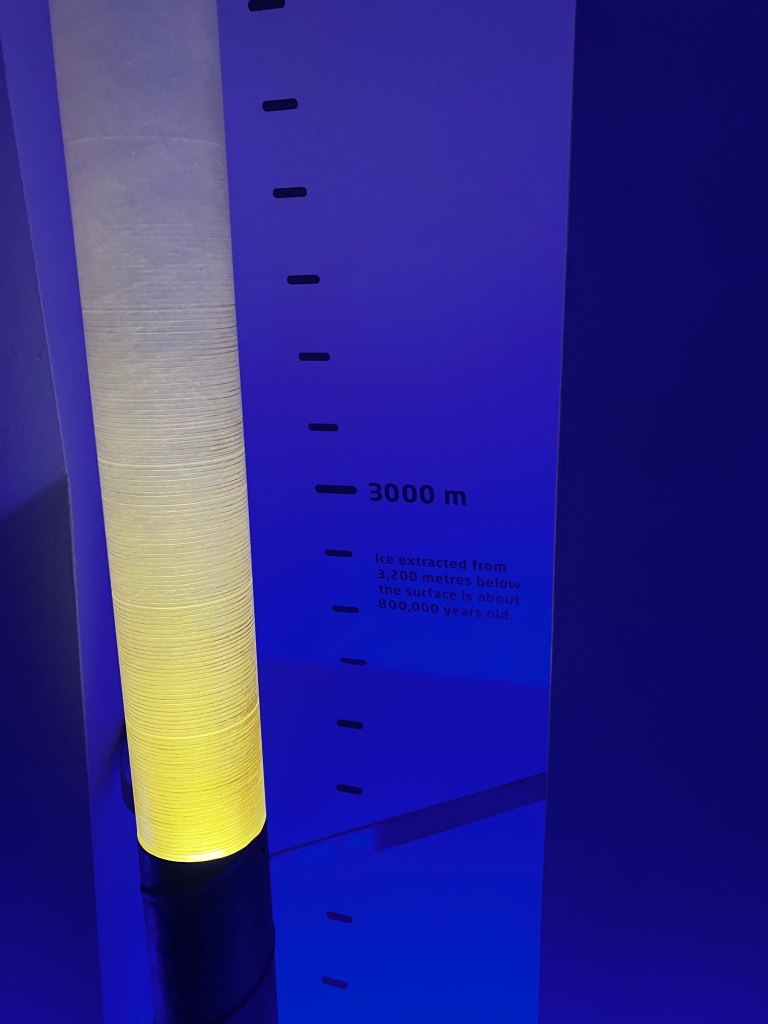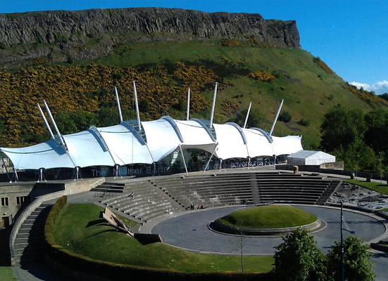 We then walked down to a place he has never been: Dynamic Earth. Which is obviously a new construction, jarringly so after days spent wandering around historical towns. Picture stolen cuz no way could I get that angle on the building, because behind the photographer is the Scottish parliament and I don’t want to go to jail.