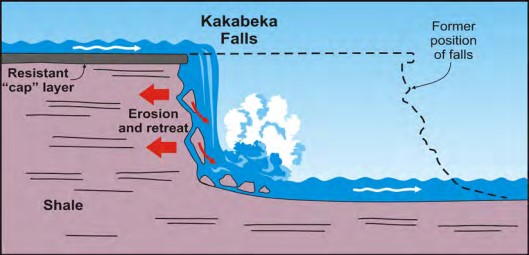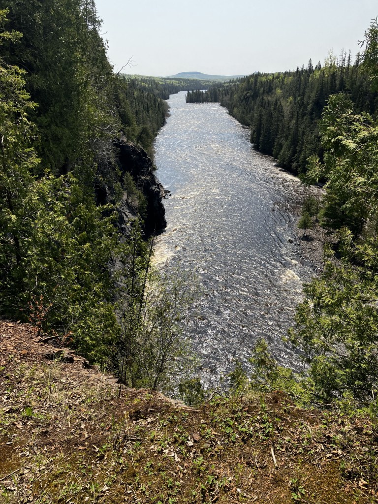 In case you were wondering (as we did) Kakabeka falls has been carved out of the slate 500 meters in 10’000 years. In theory, that means it removes a centimeter of rock every year, but there’s a twist! The top layer is a material called chert, which is made of silica and harder than slate! It prevents the top of the falls from eroding, so the slate erodes out from the ‘caprock’ until eventually the chert is unsupported and collapses.