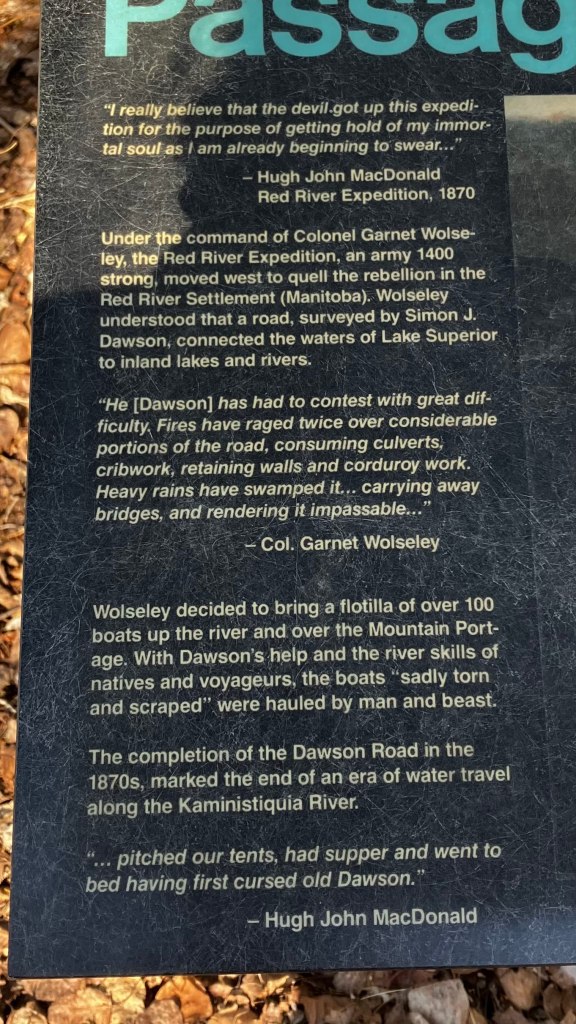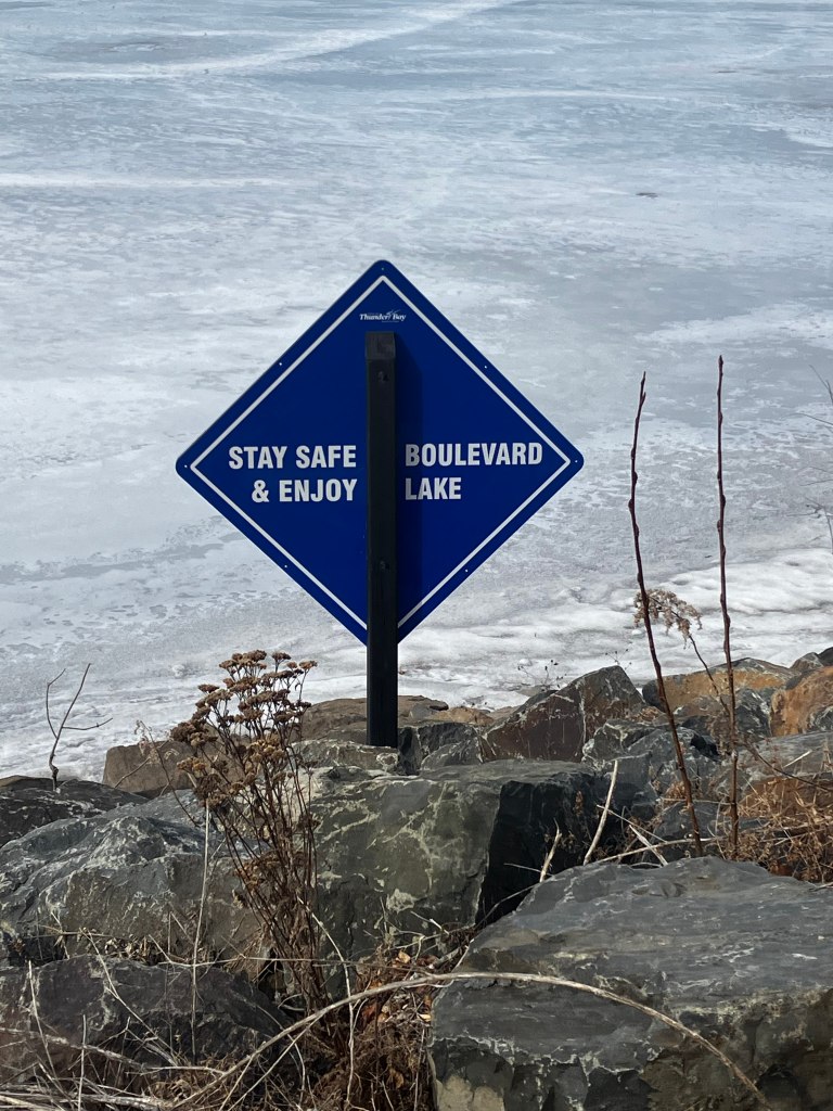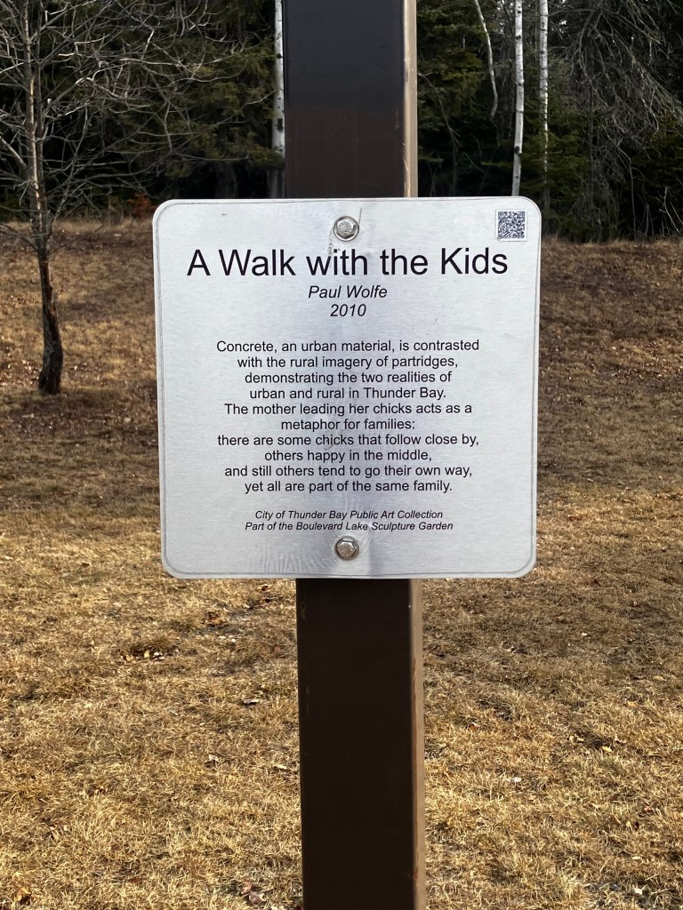 On Tuesday I did the walk around Boulevard Lake. The name is bollocks, but the lake is nice. There’s a parking lot with a large play area for kids, a vendor who sells ice cream and cool drinks in the summer, and a mini-putt. The walk around the lake is around 5km, mostly flat and paved, but some uphill. There are a few “art attractions” scattered off to the side. The north side follows a busy road over the river, and the south side is a walkway over what used to be a hydroelectric dam (I don’t believe it is currently generating). It includes a run for the rainbow trout going upstream to spawn! Thunder Bay was all in on hydroelectricity when it was the new hotness at the beginning of the 19th century, and the large number of rivers they have was supportive of that.