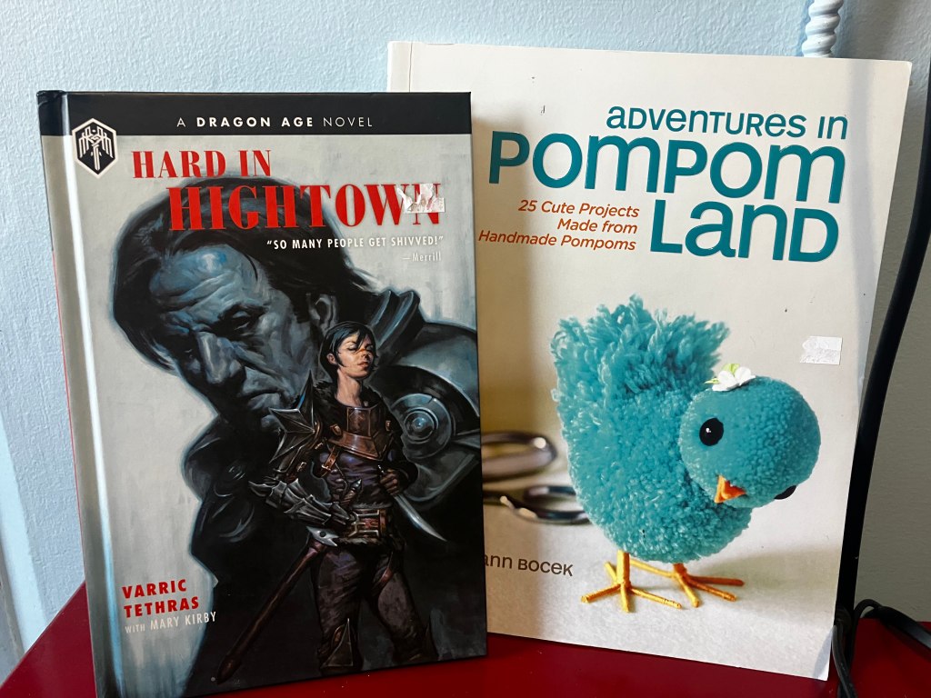 Taking me into a bookstore is always dangerous, as K learned. I soon had an armful of books, although I didn’t find the books I was looking for. I wanted the Bikeriders book that had prompted the movie. I also wanted to find any book of prose by Charles Bukowski. I pared it down to a book about making adorable little pompom critters, and a Dragon Age book. I’ve now put together an Amazon list so you guys can buy me things I want, if you want to support the blog (no comments that it’s currently all books!)