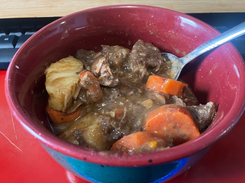 Luckily for me, I didn’t have to sort dinner. K dropped by with the beef stew from the day before, and some fresh yeasty buns he had made himself, so soft they easily tore in half. He was on his way to this end of town for another reason, but it was still very kind of him to bring me something I didn’t have to cook, and I appreciate it.