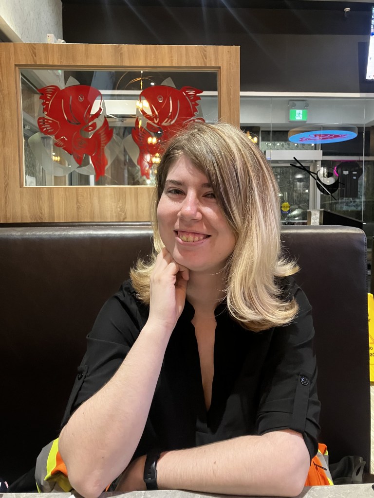 I got cap highlights done. I wanted the blonde to be touched up so there wasn’t this obvious line where the blonde ended and my natural brown began. The cap is plastic and the hair dresser pulls out the hair to be highlighted with what looks like a crocheting needle. I’ve had it done before, but for some strange reason it hurt a lot! I was grimacing and wiggling in pain. Julia said the pressure change from the dramatic change in temperature had been messing with everyone’s pain perception.