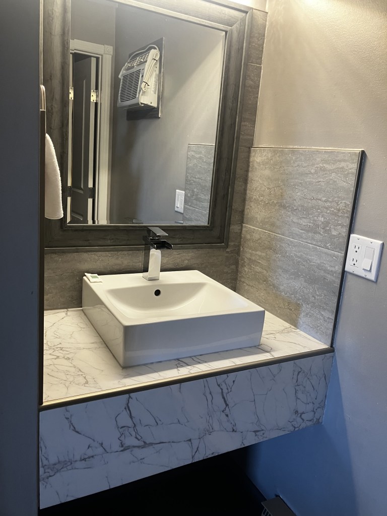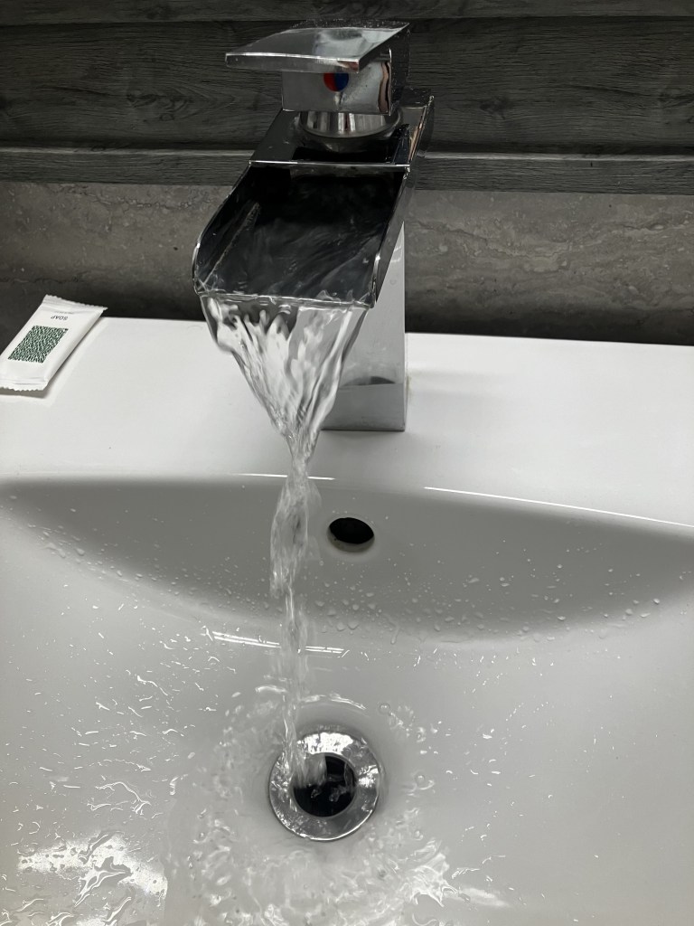 I got lucky? Got a room on the end, ground floor, for better or worse. Means no walking up and down stairs with my boxes, but I do have to listen to the person above me. No coffee machine, oddly. The water closet is separate from the sink, which is some “fancy” waterfall type. I did the usual checks; are there bedbugs in the mattress? Garbage in the pail? Is the bathroom spotless? Getting sort of ruthlessly efficient about this. Everything checked out. The sink is kind of nonsense – sure, it looks pretty, but the basin isn’t deep enough and any amount of water flow causes splatter.