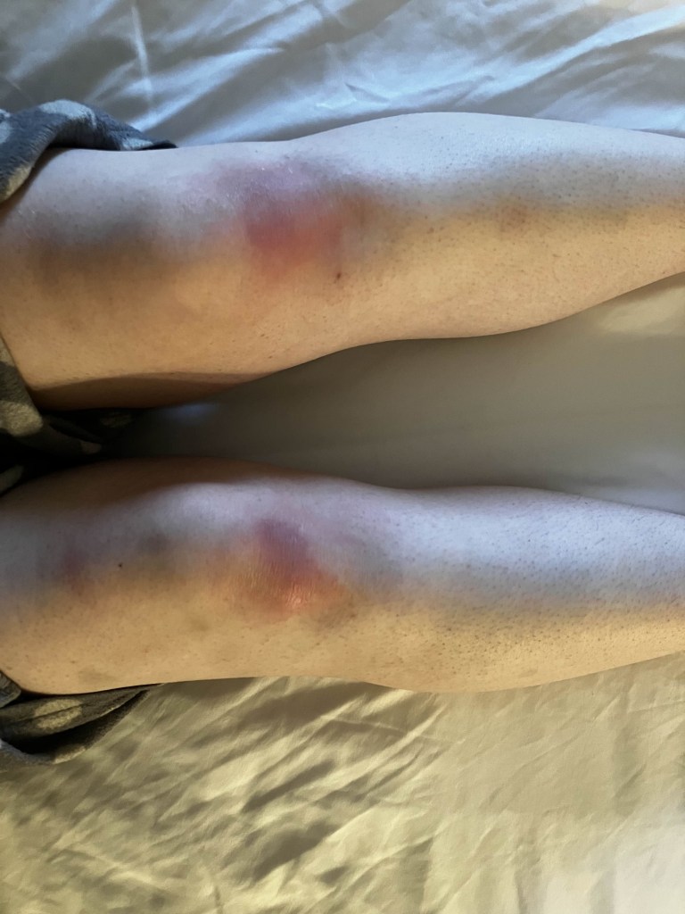 The borrowed knee-pads are a godsend. I barely feel two days spent on my hands and knees. I’ve started acquiring the usual variety of bruises on my shins, but some extra on my forearms as well.