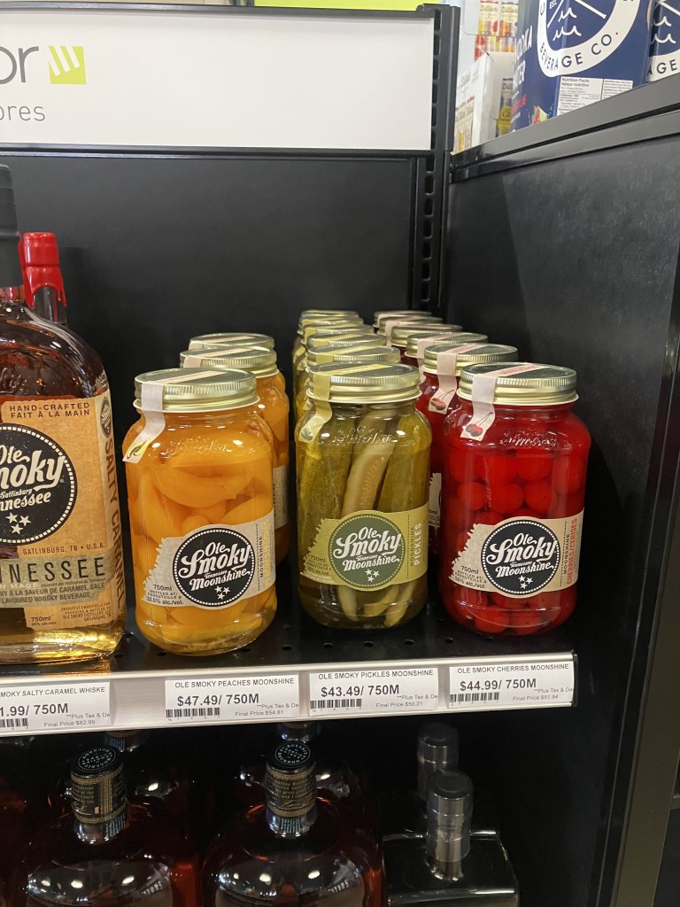 Next I went to the liquor store. I was reminded that only Ontario is so puritanical with liquor – I could have grabbed whisky from the grocery store, but I’m not used to it. I also probably shouldn’t have brought Duff to the liquor store, but we all make mistakes. We had fun commenting on the odd things on the shelf again.