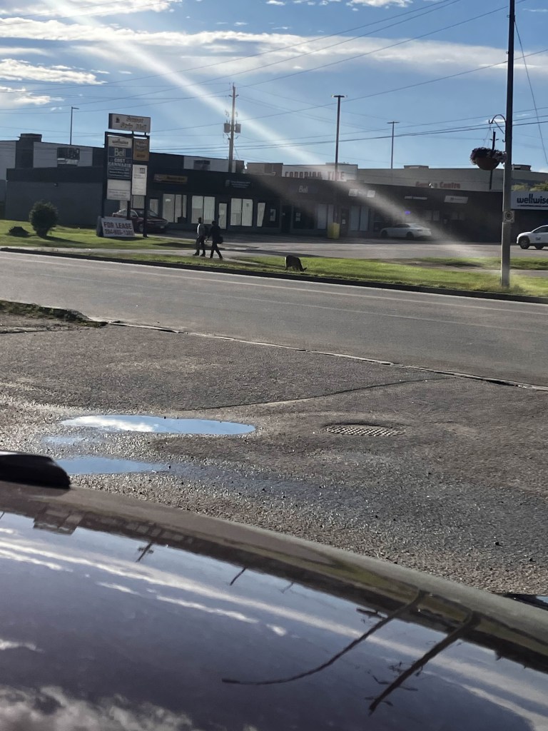 I got halfway to K’s place when I realized I had forgotten my wallet. We went out for a walk, stopping at Timmies to get something to tide me over until I was allowed back.