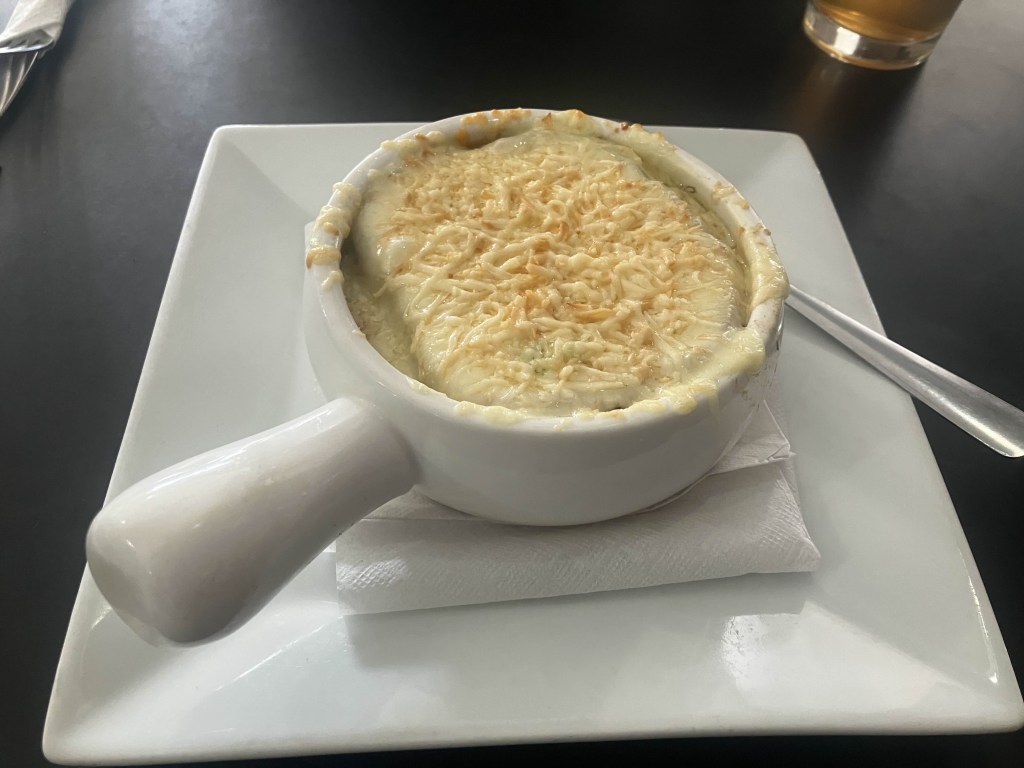 We stopped in Kakabeka for lunch. I got some onion soup. Onion soup is my favourite and one of the few things I can make myself eat no matter how sick I am, but I haven’t had any in a while. Nowhere to store a bag of onions.