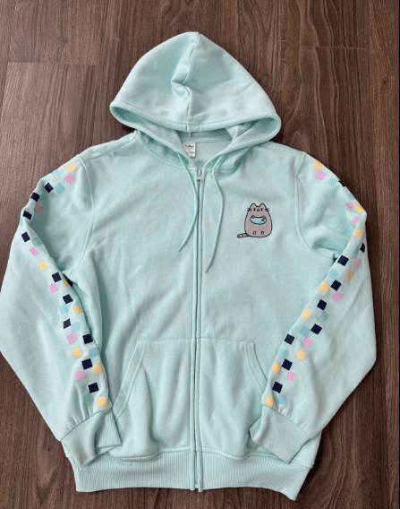 He didn’t want to buy me a t-shirt; he wanted to buy me a hoodie. My current favourite hoodie is a Pusheen exclusive, turquoise with colour blocks. It came with the video game box and is video game themed, which is part of why I love it. He complains it looks like a child’s hoodie, and I suppose it does, which makes him uncomfortable when I look so young already. But I’m not arguing with a free hoodie, especially something biker themed.