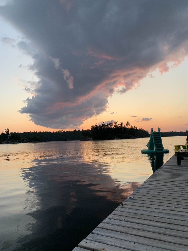 After we got back to the cabin, I decided to try one of the pot gummies. I don’t like trying random pot edibles – my tolerance is really wonky and I get couchlock easily, but since he hadn’t let me bring mine, why not. It hit me quickly. He wanted to go out to watch the sunset on the dock, but I didn’t relish the idea of trying to stagger back to the cabin and went to bed instead.
