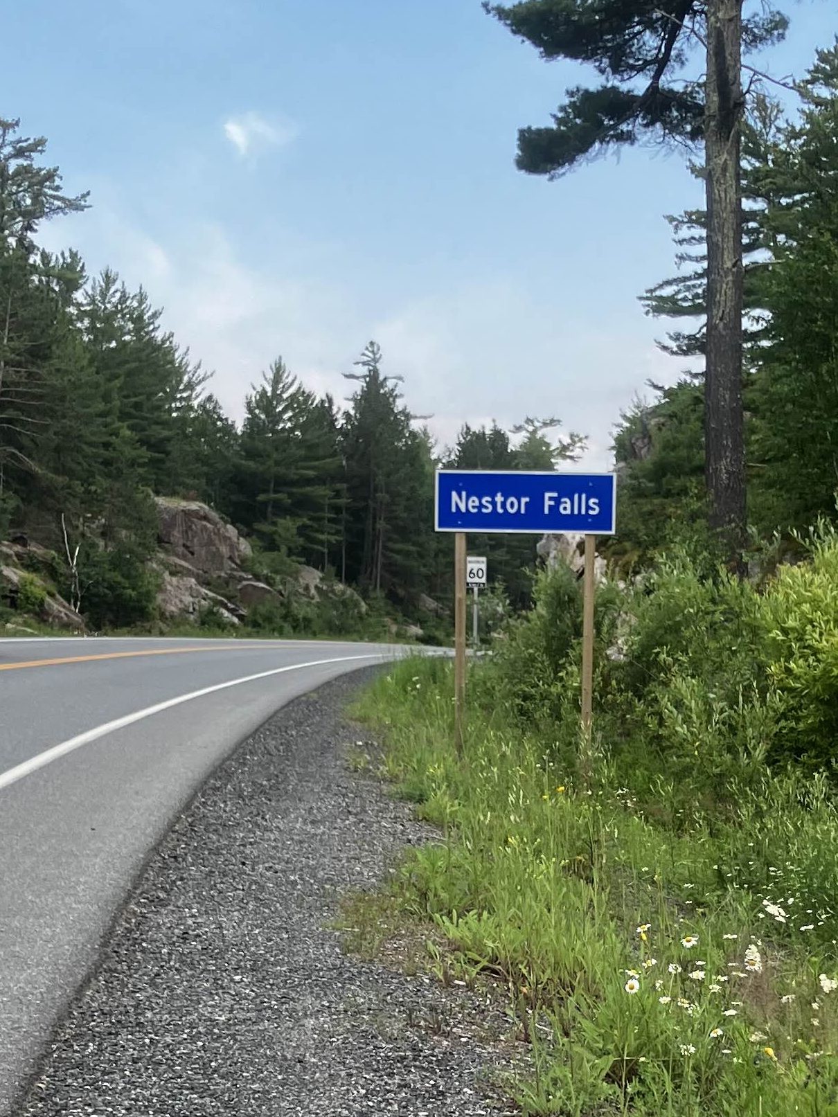 The highway north to Nestor Falls is pretty flat, straight and boring. I knew his energy was flagging at this point, so that was probably for the best.