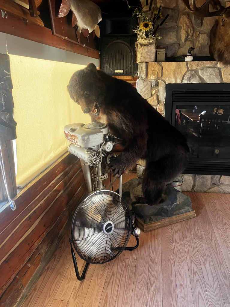 As we stopped by the cabin, the owner mentioned he has motorboats for rent. The Vagabond says he’s pretty sure his license has lapsed, and the owner says that doesn’t matter because you’re renting off his license.