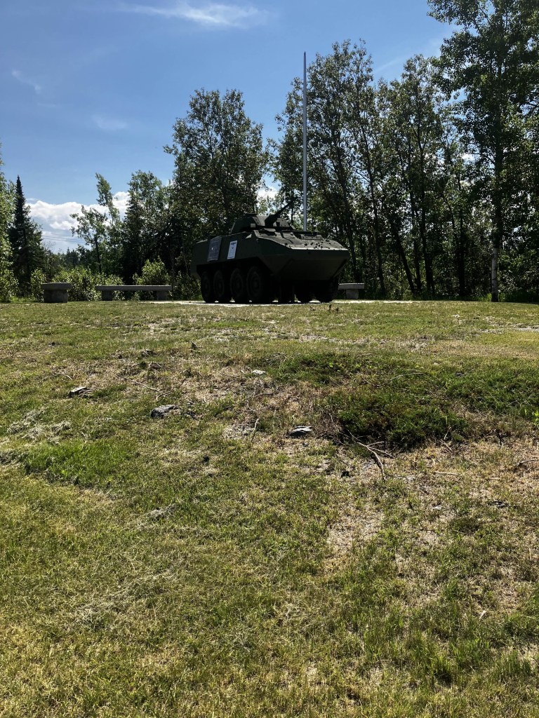 They have a “Veteran’s Memorial” across the way, which was just a park with a tank and some plaques in the middle, but it’s better than nothing. I wish the plaque was in better shape, its only been ten years since it was 2014!