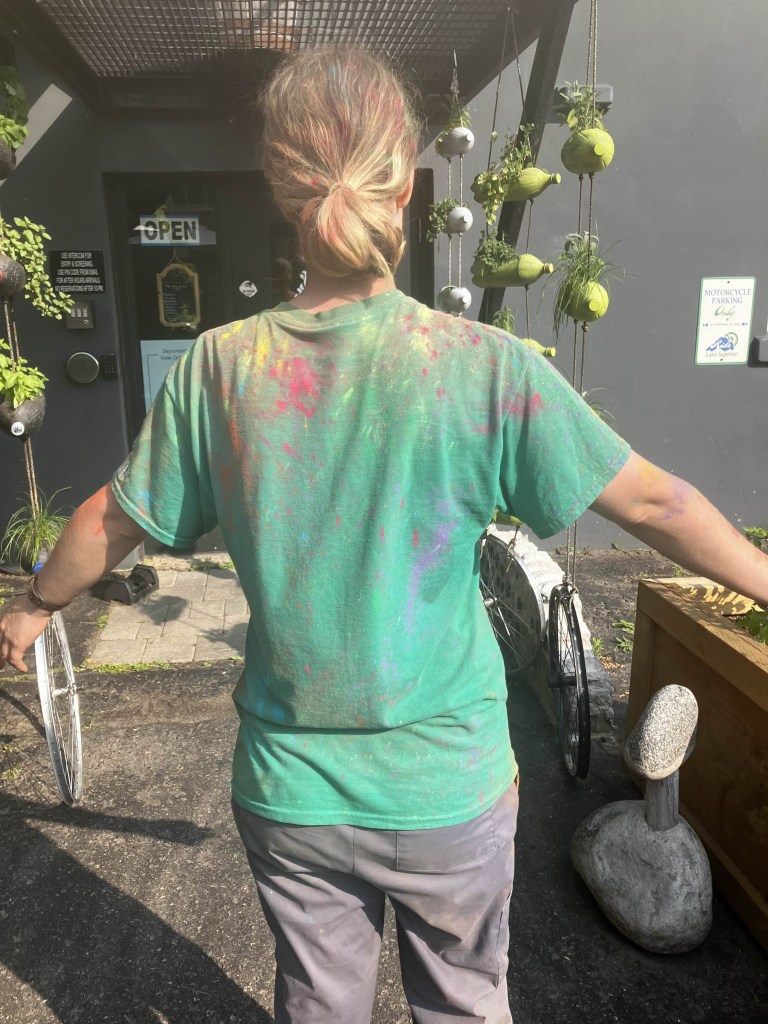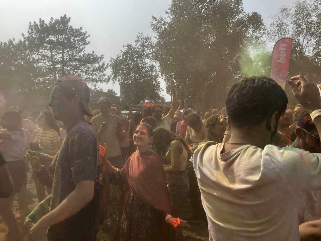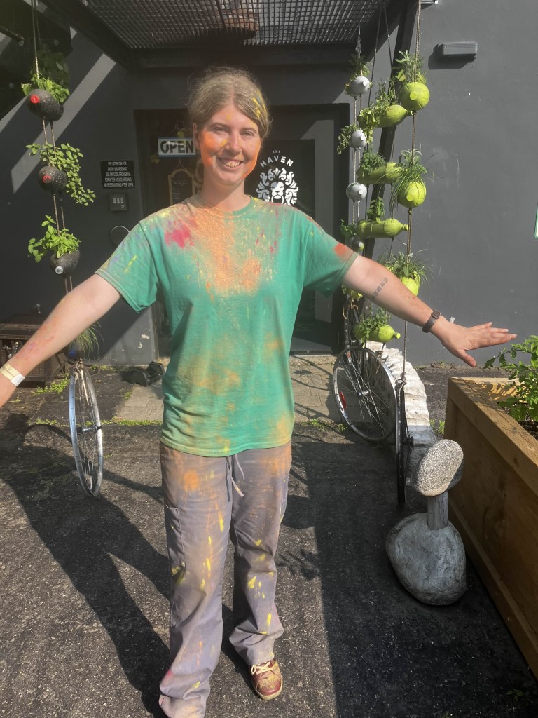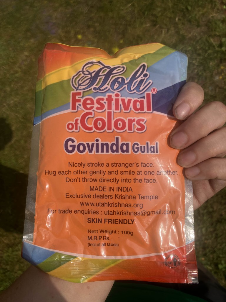 I wasn’t really sure what to expect. I mean, I was definitely expecting there to be some mischievous people who zero in on anyone wandering around without colours, but I wasn’t expecting the instructions on the back of the bag to include hugging people. Apparently part of the etiquette is to dip two fingers in your bag of colours and stroke the other person’s cheek, before blessing them. They kept saying “holy”, and I learned later that’s because the festival is usually called “Holi” in India, which wasn’t readily apparent.