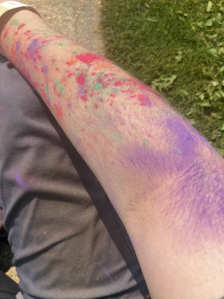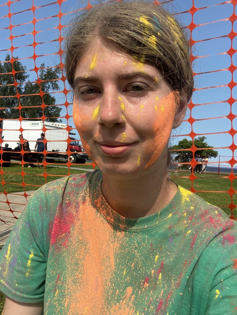 There was one fellow, who was clearly very autistic or something close to it. He was wearing a full face respirator, and sort of awkwardly dumping his bag of colours on people instead of grabbing a handful and tossing it in the air. But he accepted the attempts to bless him by touching his mask or neck, and my heart was glad that he came out and was participating in his own way, and that no one was giving him a hard time about it!