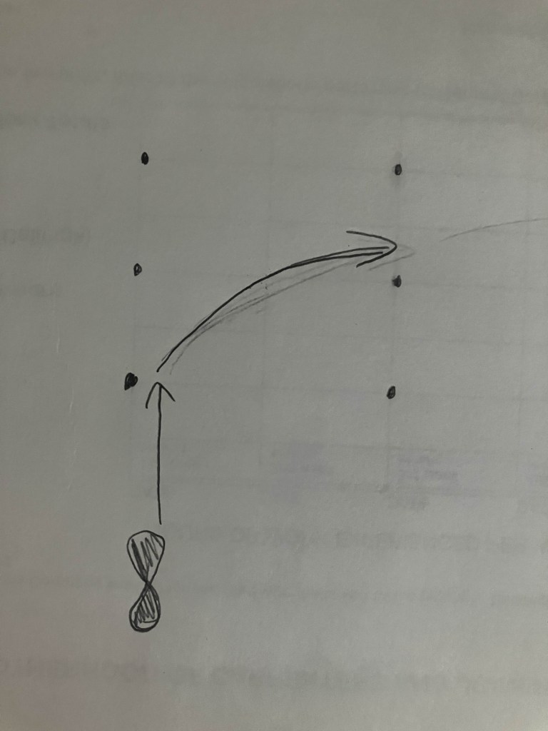 Simplest way to turn on a bike is to approach on the long side of the curve, then cut across the short side when you’re two-thirds across. Probably best explained as a diagram:
