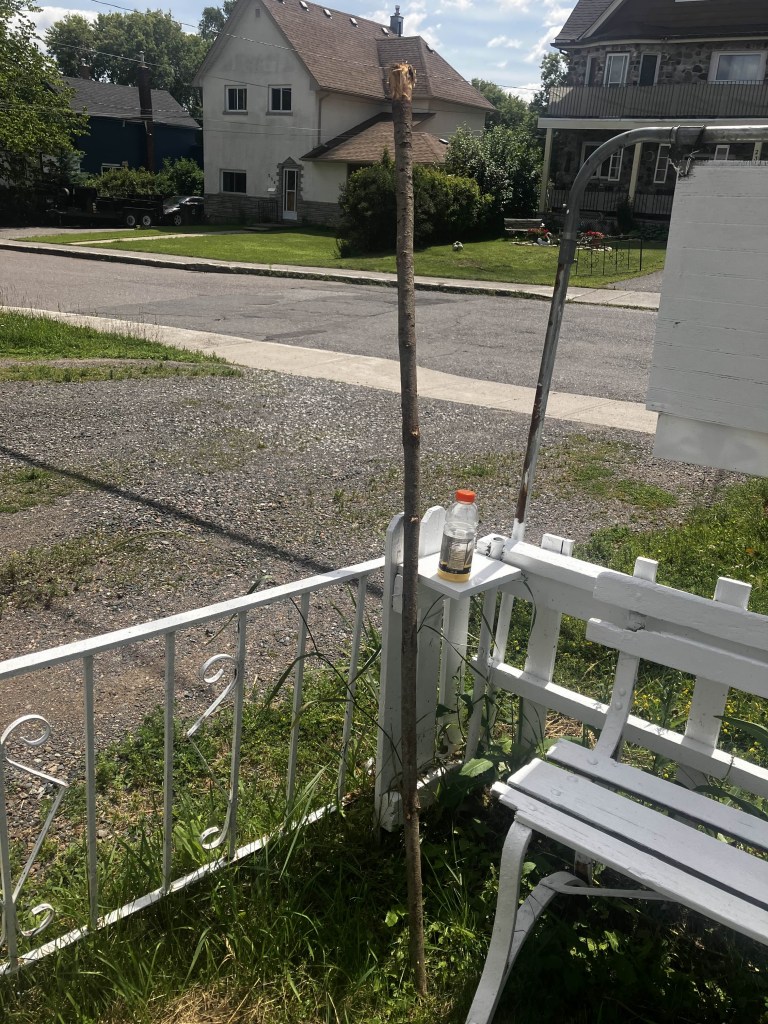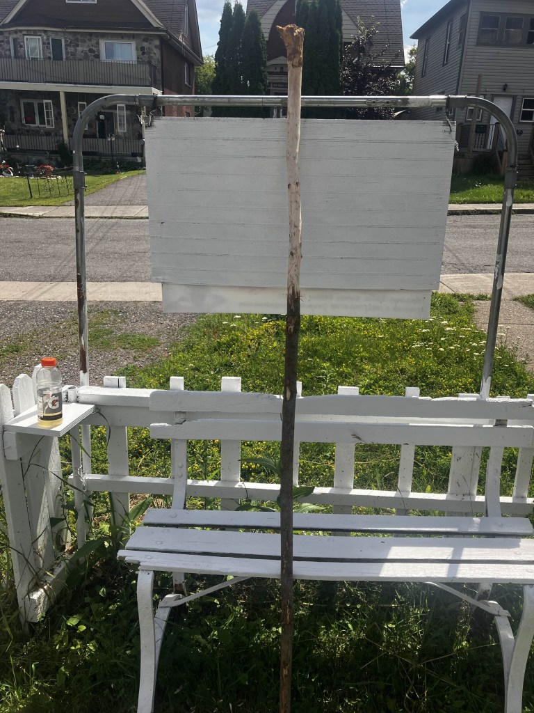 My hands were shaking as I walked up to the door. He shouldn’t be back, but there was no way to tell – he parks out back. I let myself into the sunroom and tripped over a pile of flyers. He wasn’t back yet. I placed the containers and card on the chair, and leaned the stick next to the door.