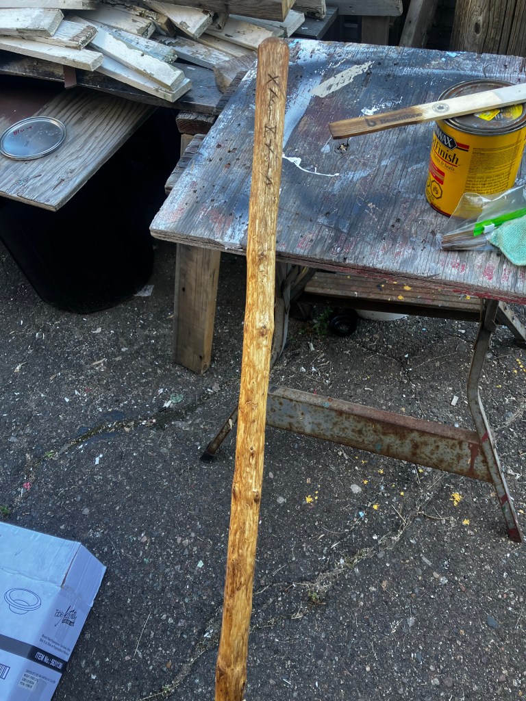 I got almost all the bark off, save for a small bit at the end I decided to leave cuz I’d be cutting it down.