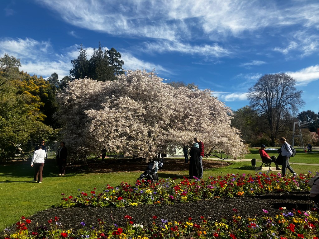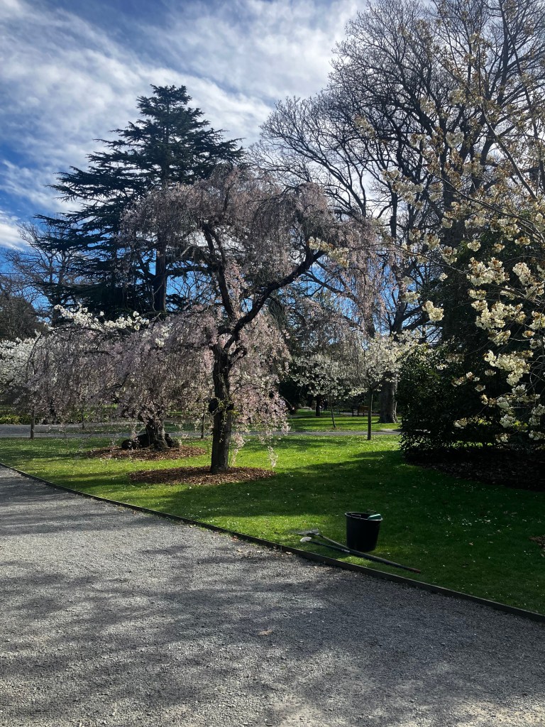 I took a deep breath. I expected to smell the sea, and I did, buried deep under the other smells. What smell was most predominate was flowers. Spring had sprung in Christchurch. Some trees were bare, some were budding, but some were covered in voluminous, fragrant flowers. I recognized the white ones as cherry trees right away (prunus yedeonsis, specifically noted to be common near Hagley Park), but some of the others were clearly subtropical plants. New Zealand was a subtropical forest before the Brits arrived, and it showed in the variety of flowering trees. Fields of flowers or plains are uncommon here.