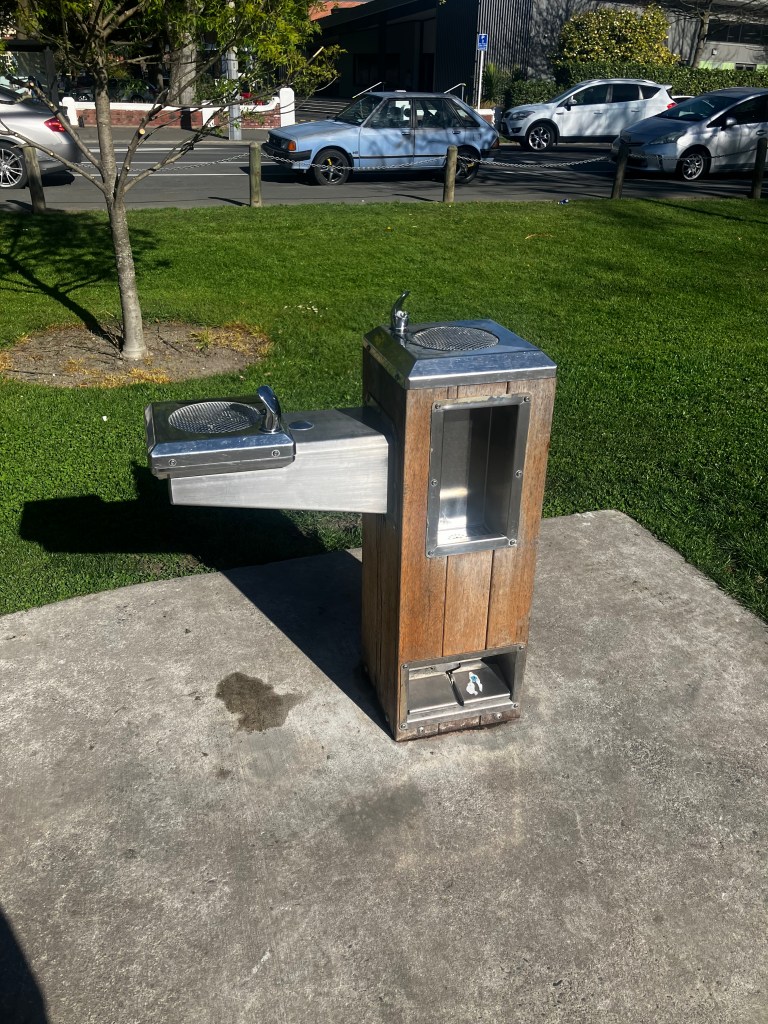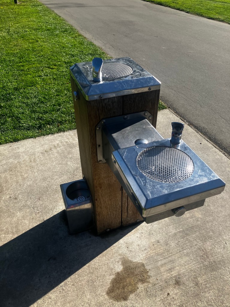 I noted a water fountain along the walkway, with attendant short fountain for dogs.
