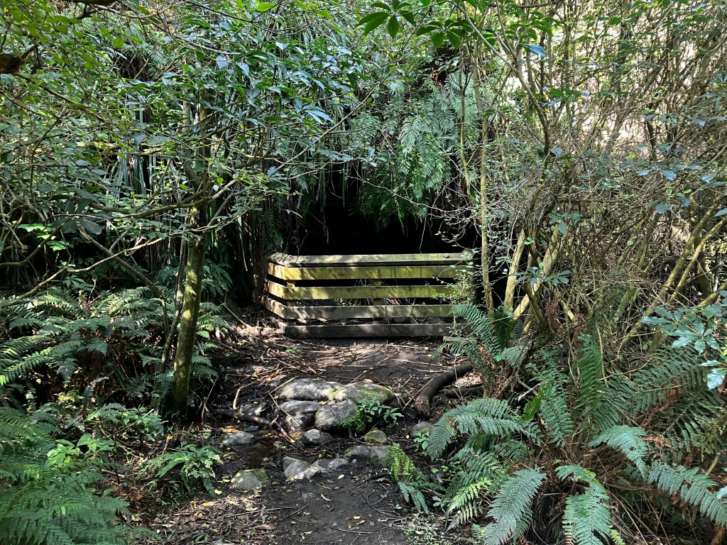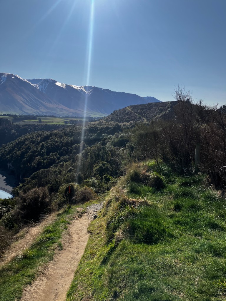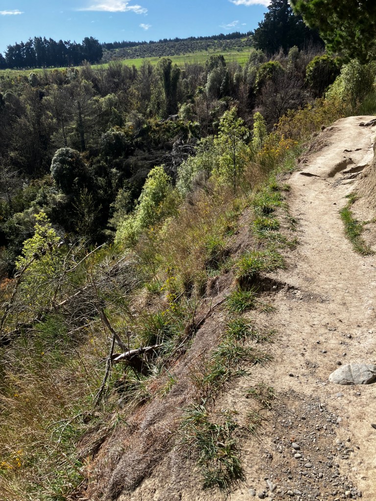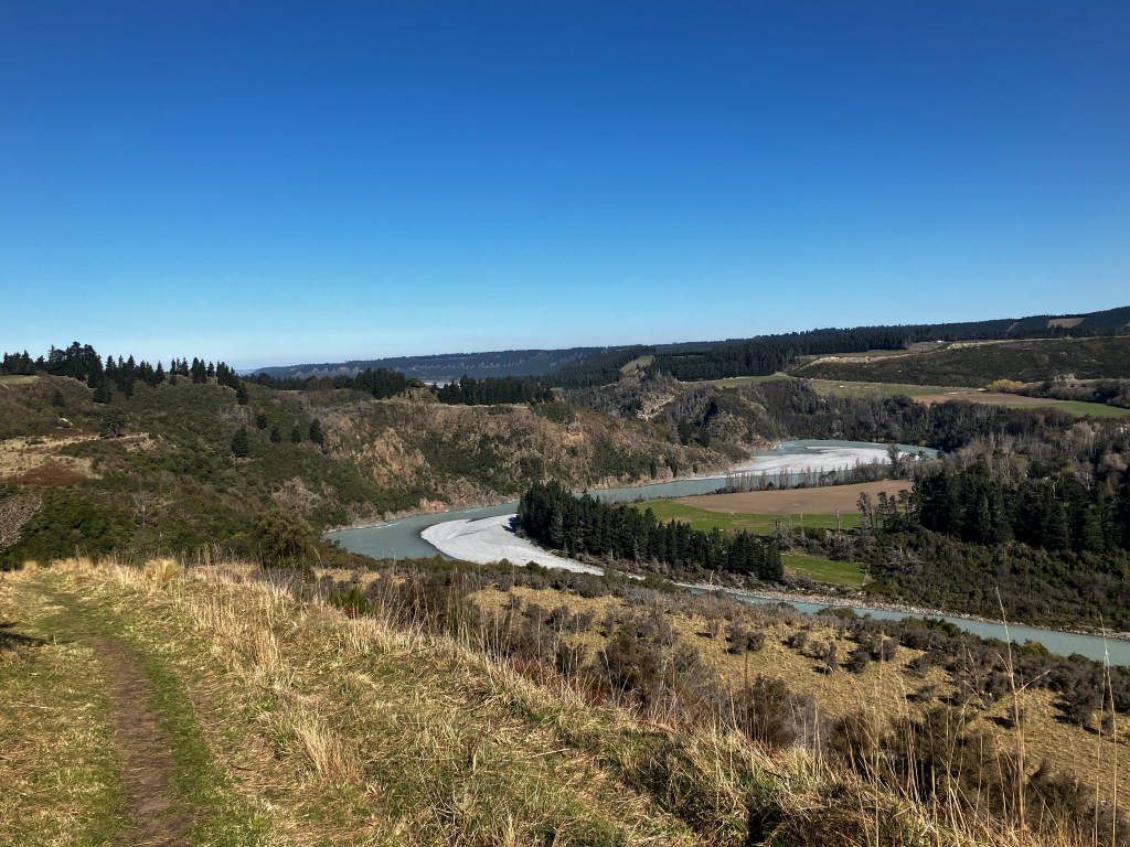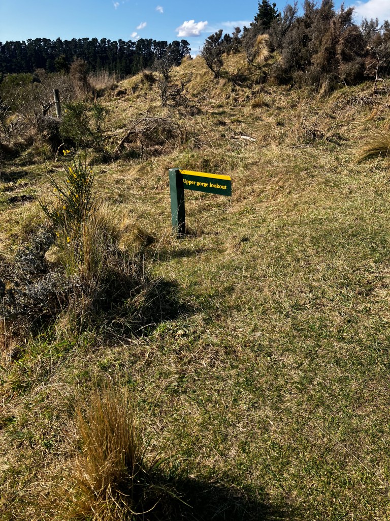 Now, soon afterwards I got to the sign that says “path to lookout” and “alternative path to lookout”. Depending on your fitness level, I’d say just take the alternative pathway and skip the other one. The alternative path is shorter, but it’s also flatter. The ‘original’ path actually dips back down to the river level – for the boat launch – before veering steeply uphill. It was so severe I had to stop and catch my breath a few times, which I hadn’t had to do the rest of the hike, despite the heavy coat and my bag of gear. I will say, the alternative path did go through someone’s private cow paddock, and I did recently read an article about the number of random civilians who get trampled to death by cows, so be cautious.
