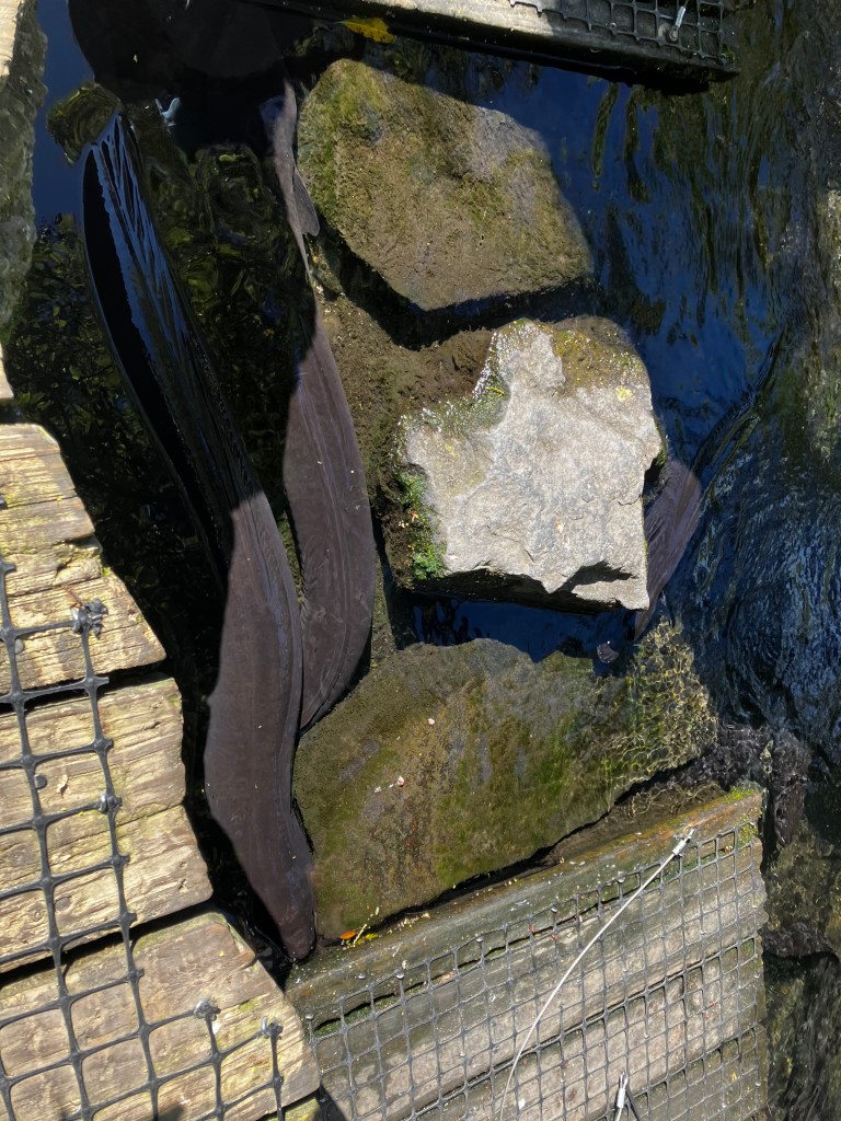 The first animal is the giant eels that were absent from the Avon. You can purchase specific feed for them and give it to them in these long skinny spoons.