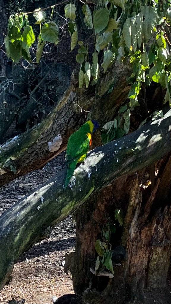 At one point I noticed a lot of the birds were labelled “such-and-such parrot” and wondered what makes a bird a parrot. There was a zoo keeper in one of the cages putting out feed, so I yelled at them “What makes it a parrot?”