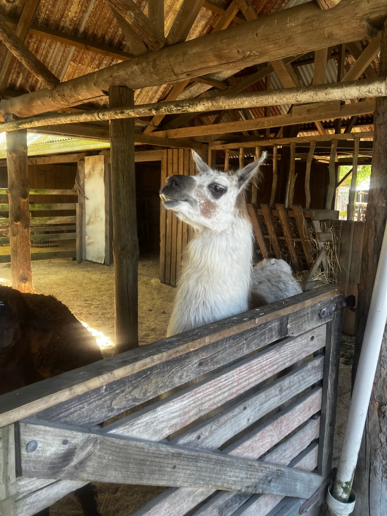 Jen had never seen a llama and somewhat leaned over the fence to get a better picture of it. Which led to a hilarious moment where the llama decided she was getting too fresh, and walked right up to her! I had to warn her that llamas will spit if they don’t like you, and she gave the fence a wide berth after that. The llama followed us until we were beyond the reach of its pen.