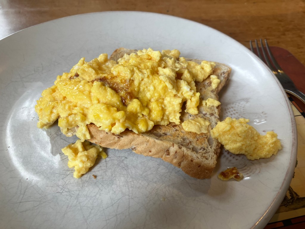 The chickens lay more eggs in the summer, so we are drowning in them. Simonetta decided to make scrambled eggs on toast for lunch, which were delightfully light and fluffy. I wished she had made double, and settled for regular toast with jam as I was still hungry.