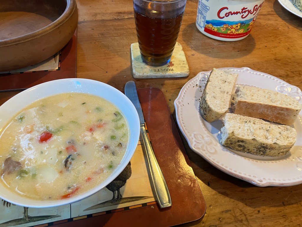 Also unique to my life experience is being asked to suggest ideas for dinner. That was one of my tasks as a child; my mother would ask me what we should have for dinner, and I’d suggest ideas until either one caught her or she thought of something on her own. Here, there is a constant fuss over trying to switch things up without making it so different Gary will object.