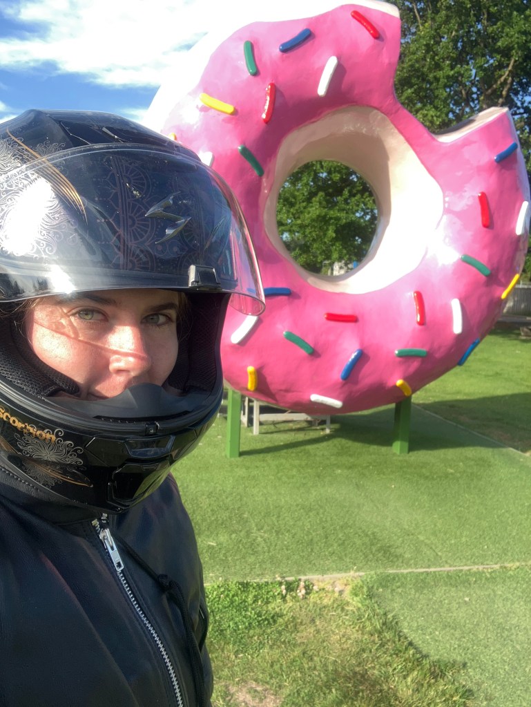 I tried popping my headphones in and zipping the cord inside my jacket. There’s no spot for a radio or even speakers on my bike, and the silence is deafening (metaphorically… the actual noise of the bike is truly deafening). The first song my phone offered was “Too Good at Raising Hell”, which seemed apropos. However, the earbuds don’t like to sit in my ears with the vibration of the bike. My next helmet needs built-in speakers or something.