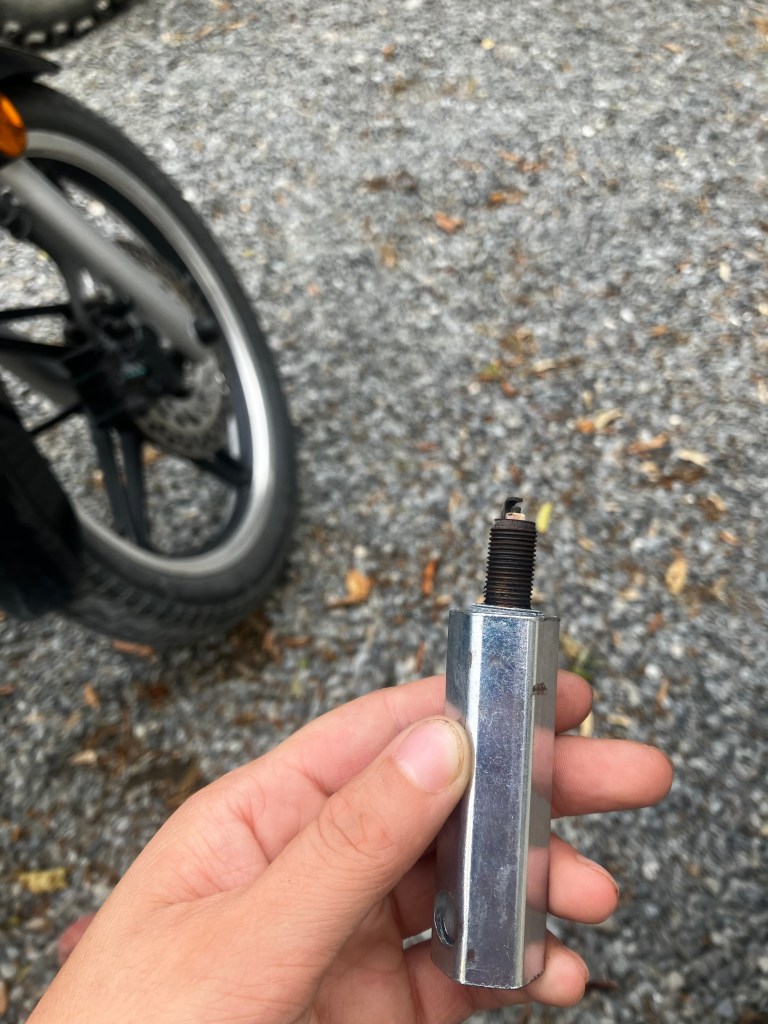 Once I finished having a panic attack and catastrophizing, I sat down and had thought about it. One thing it can do is coat the spark plugs, which could possibly be cleaned. I went through the manual; there is a single lonely spark plug on my bike, easily reached, and the little tool kit that comes with the bike includes a spark plug wrench.
