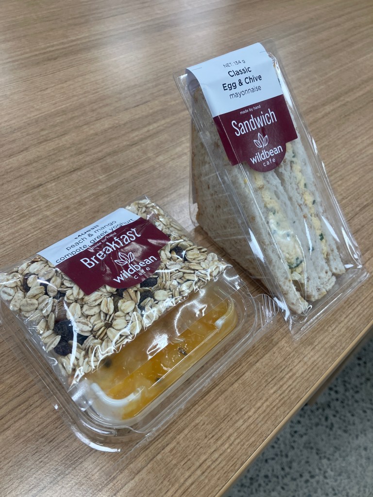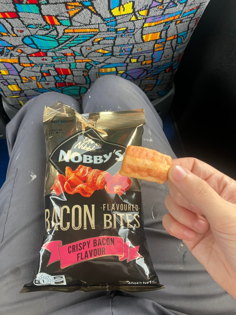 There was a Macdonald’s there, but I was rewarded by walking a bit further. I found a truck stop gas station that sold hot food and fresh coffee. Got the usual flat white and this time, some yogurt with muesli, and a sandwich for later. I eyeballed the chips and candy but convinced myself not to. Settled down in the seating area.
