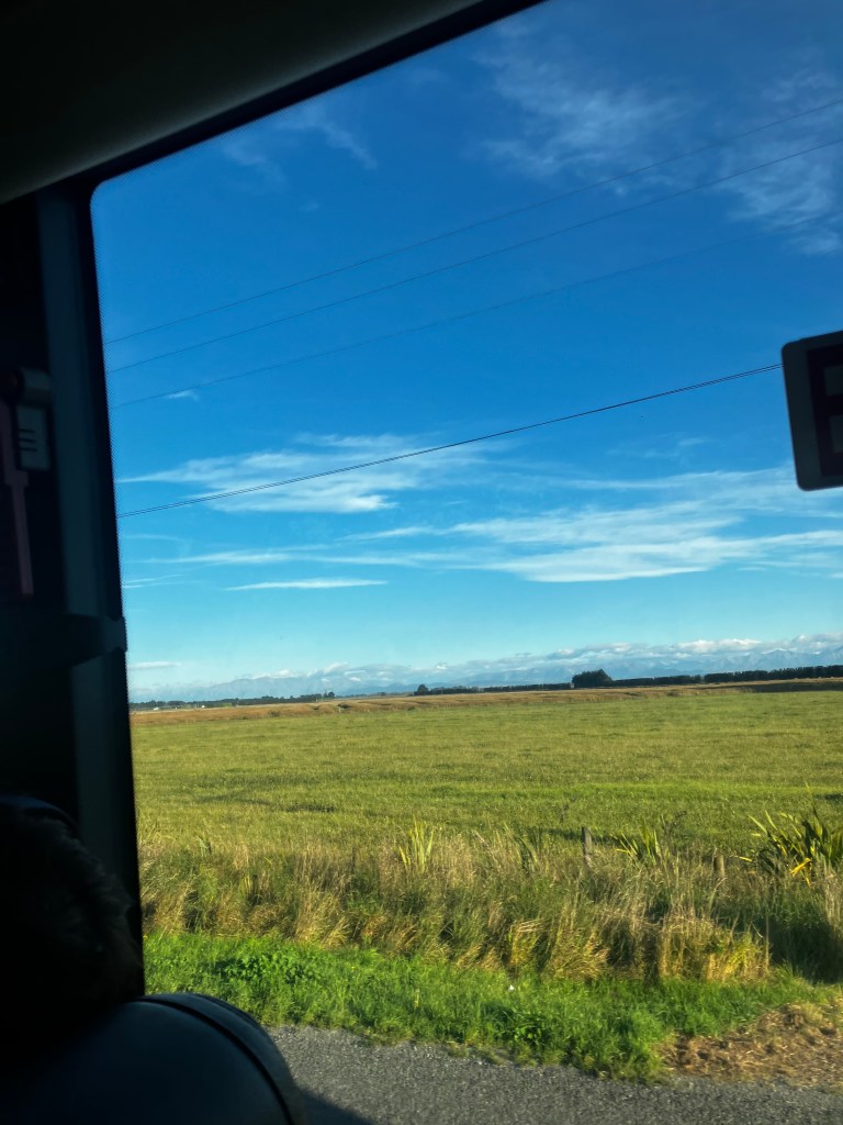 It clouded over after Oamaru. This bus was sort of fiddly – the seatbelts didn’t like to work. I couldn’t get mine to give me enough slack to clip it.