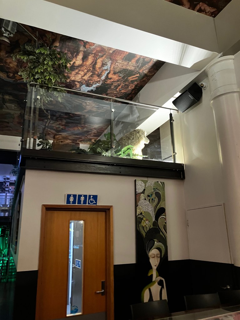 Now what? I debated walking down to the liquor store, but I noticed signs about the hostel telling us not to drink in the building. More puritanical jerks, or just because they own the bar downstairs too? I decided not to risk being thrown out of the hostel and went downstairs to scope out the bar/cafe. It’s an odd room, very artsy.