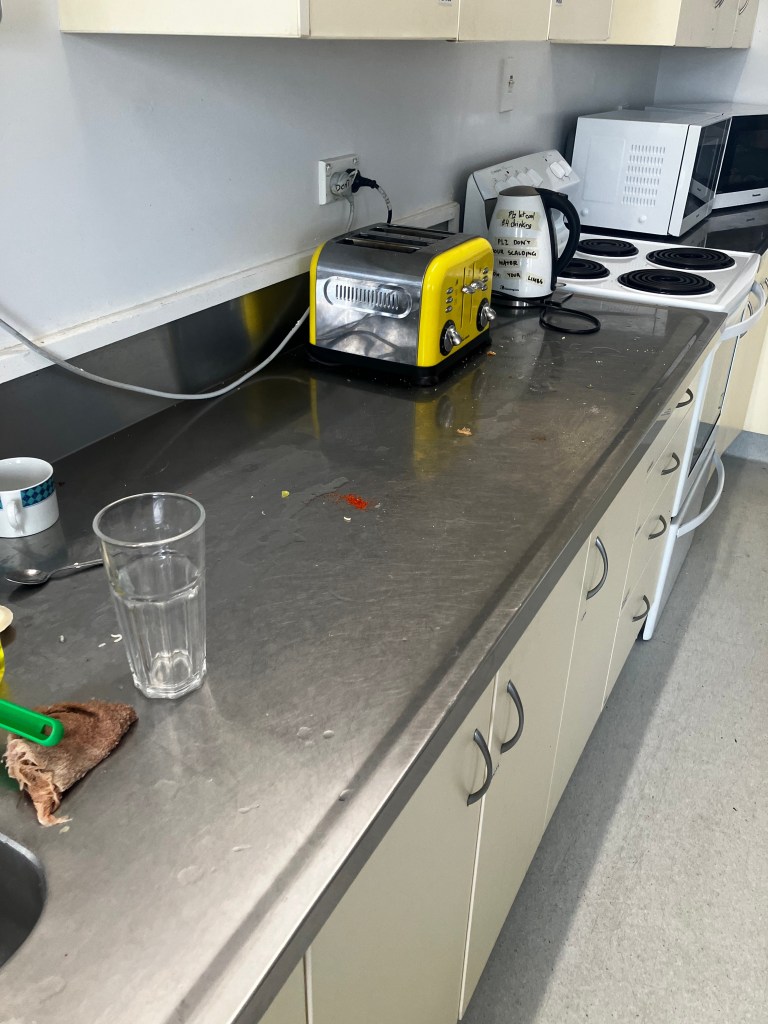 After breakfast, I went back upstairs to the kitchen, where everyone was packing for the day, to take stock of the free bin. No point in spending money when I don’t need to. There was some tea, sugar, raw rice and pasta, which I grabbed.