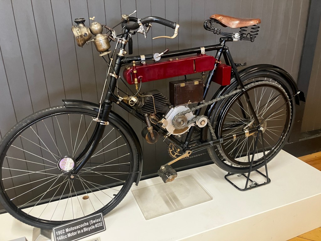 There was Mary Watson’s bike, a woman who was quite handy with mechanics. She fastened a washing machine to a side car of her bike, in an era when women didn’t ride, and drove around her area getting paid to wash laundry and then move along.