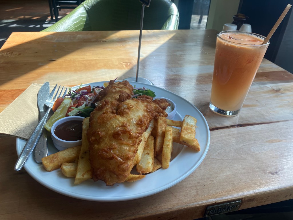 I had the paua sandwich for lunch. Paua is hard to get because it was almost fished to extinction so its harvest is very restricted now. This one was worse than the blue cod and definitely the result of not being cooked properly. It was overcooked. Some parts were delightfully chewy and yummy, but there was lots that had the unmistakable rubbery texture of overcooked fish.
