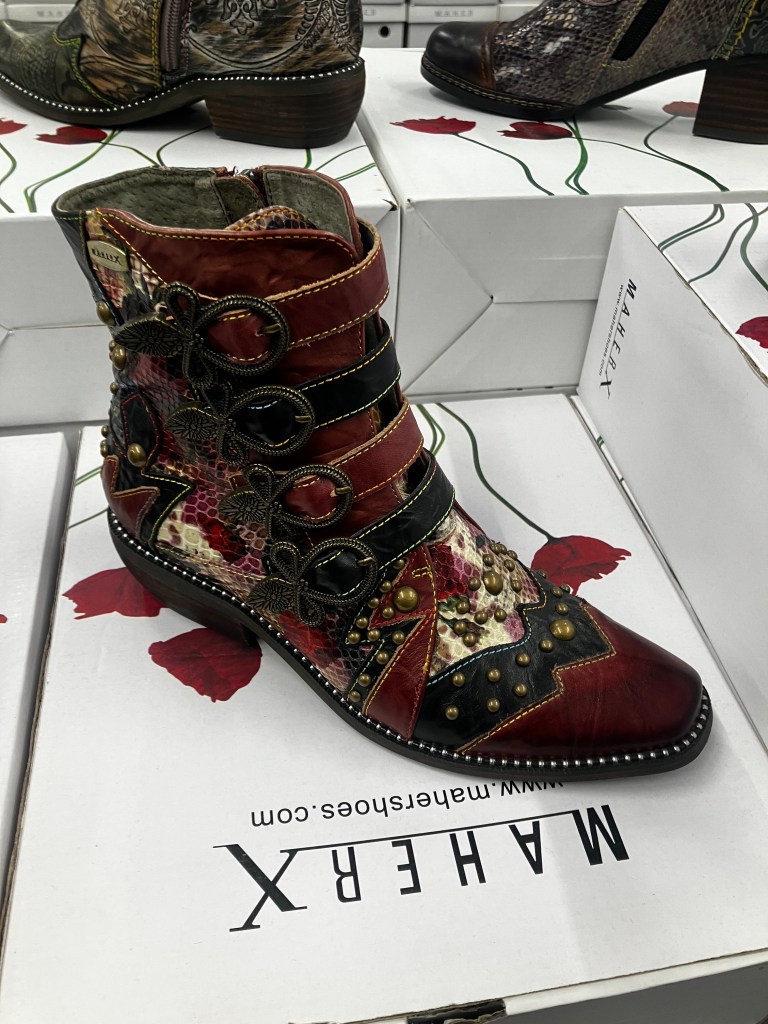 I liked a pair of purple boots in a subtle alligator-skin pattern, but they felt a little tight on my feet.