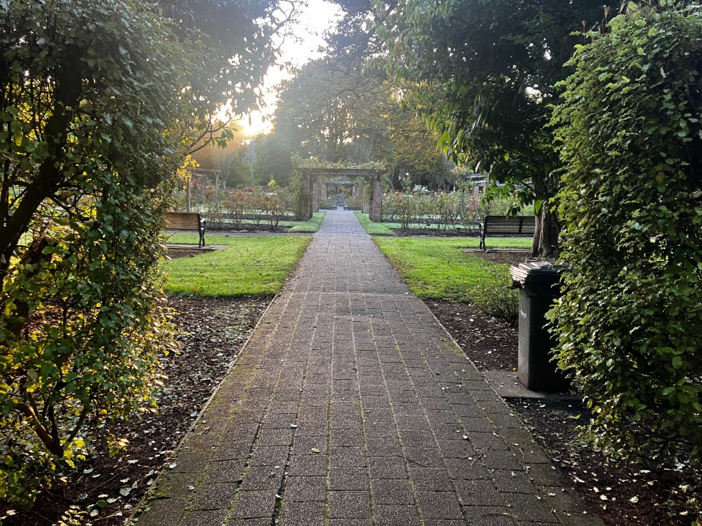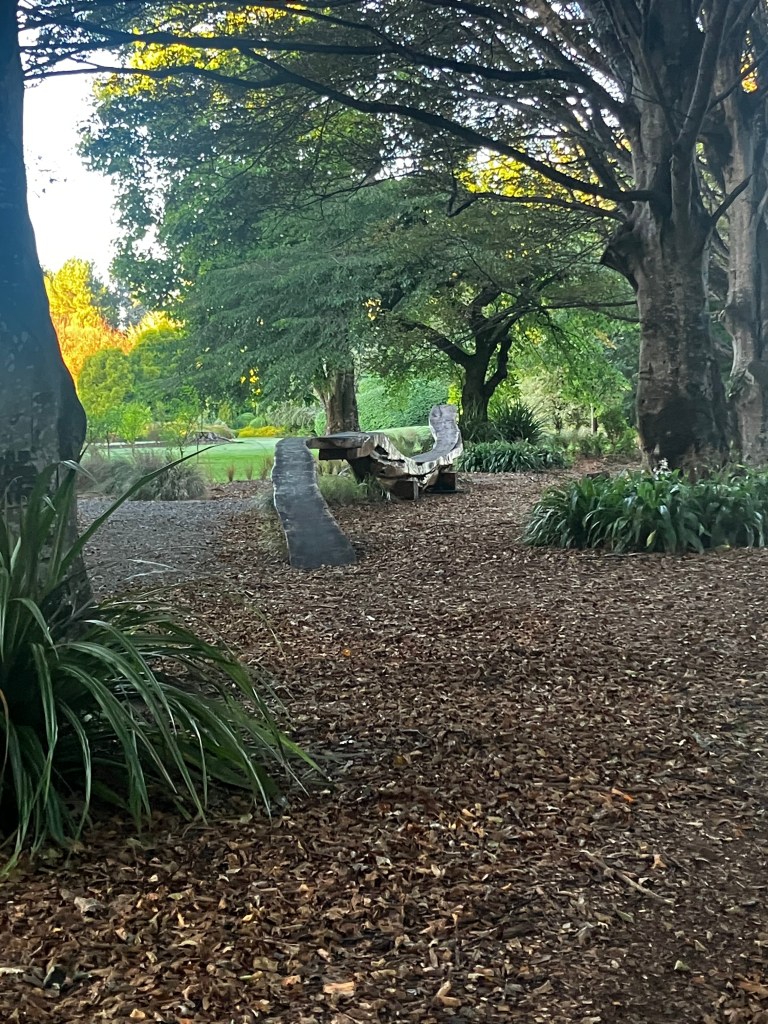 Queen’s park is lovely. Lush lawns, wide avenues with plenty of shade. The morning dew still danced on the leaves as the sun had barely risen by the time I got there. I did a wide loop around the memorial to fallen soldiers, the rose garden, rock garden, and “stumpery” (art made from fallen trees) before arriving at the animal reserve. Unfortunately the big museum is closed for renovations!