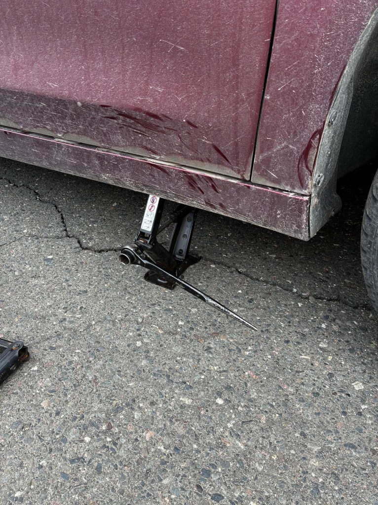 I unpacked all my tools, admired my new breaker bar, and was in the process of jacking up the car when an older man came over.