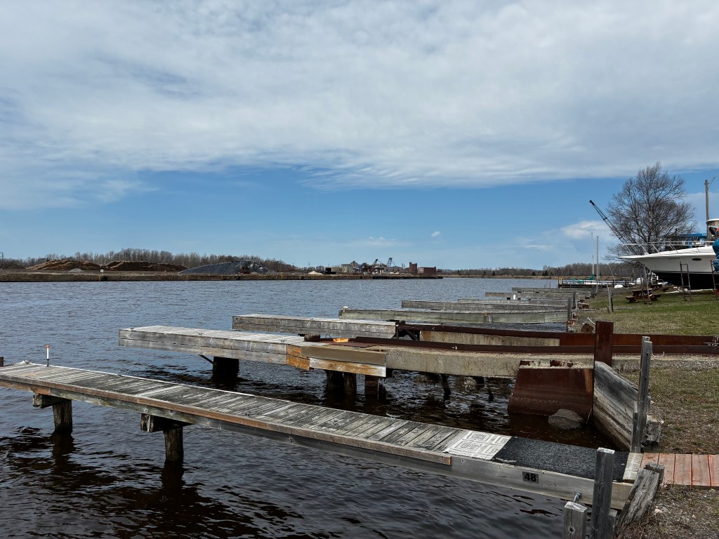 At 1 I went down to the boat to help Chris again. He was in the clubhouse having lunch, so I walked around the waterfront taking pictures of the mill across the river.