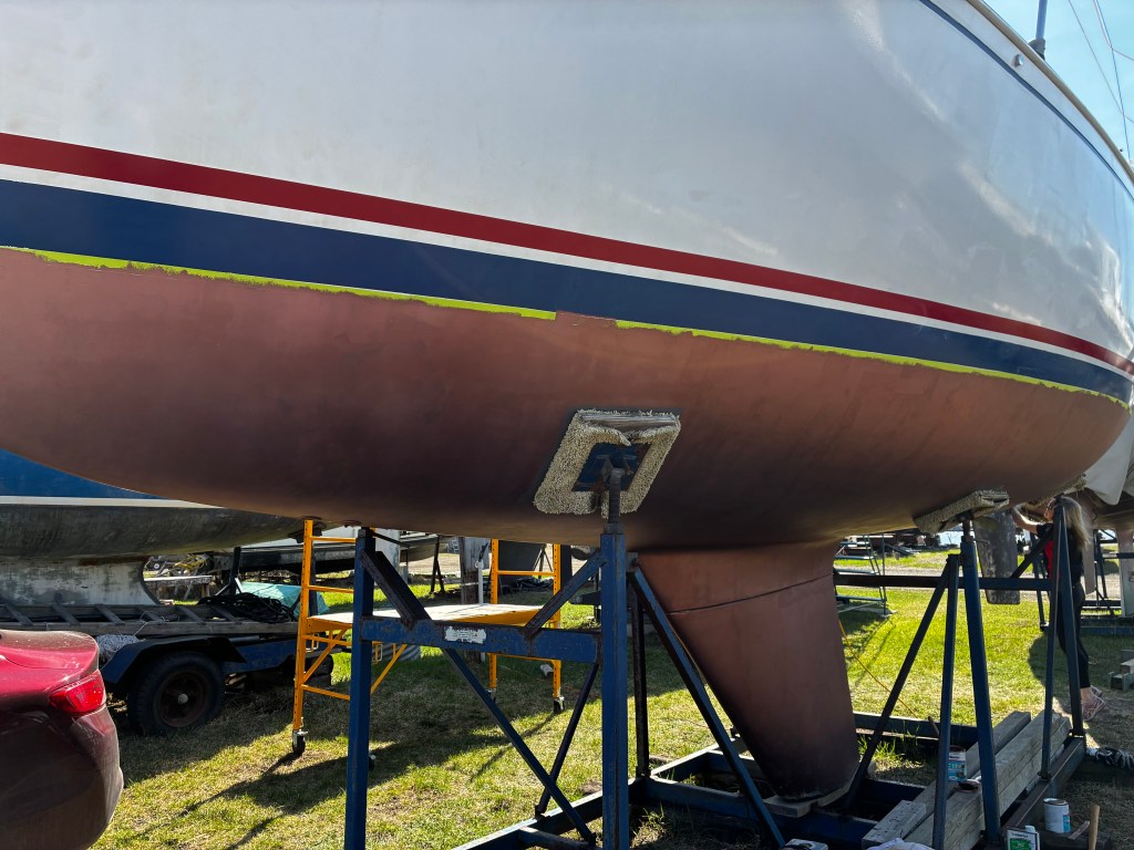 I was on the verge of heading out when Chris explained that the keel of the boat is solid lead and he had some half-baked plan to fix some damaged spots by using a grinder with a metal blade to grind it down. Using a cloth mask and no safety glasses.