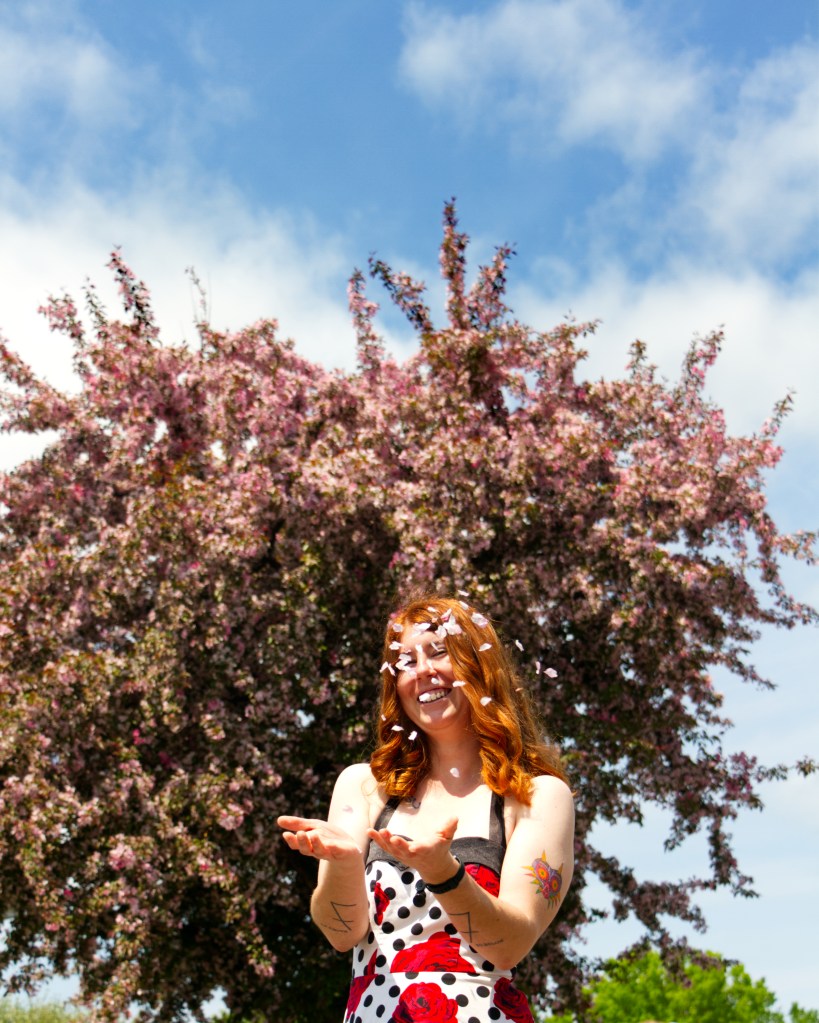 Our first shoot was a little late. Someone on the Discord had posted videos of his entire street being a beautiful storm of apple blossoms, but the blossoms had just blown a few days before and most of the trees were now not as pretty. We managed to find a few late bloomers and even this random dogwood that is such a hyper pink I wouldn’t have believed it existed if I hadn’t seen it with my own eyes.