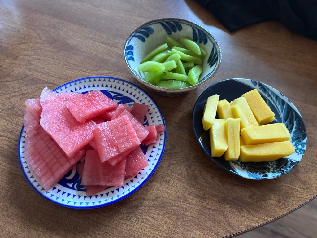 The other thing was that I wanted to do fruishi (fruit sushi) as dessert, because it requires a lot of prep and it only made sense in the context of a large gathering.