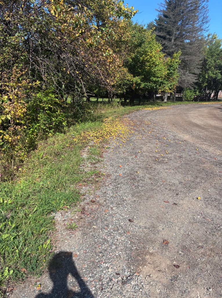 I grabbed some apples off a tree as I walked past. They were some bastard hybrid of golden delicious and crab apples, softened and warmed on the tree in the afternoon sun.