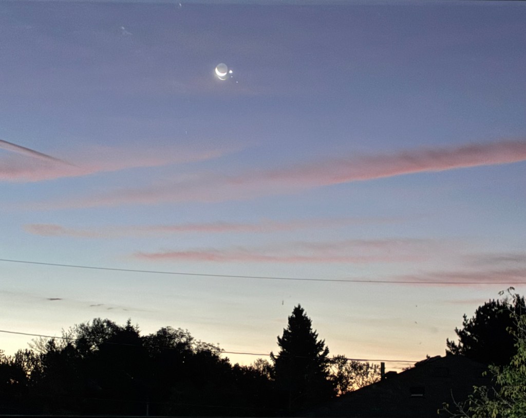 I didn’t realize it when I snapped the photo, but Venus was rising with the crescent moon when I was making breakfast.